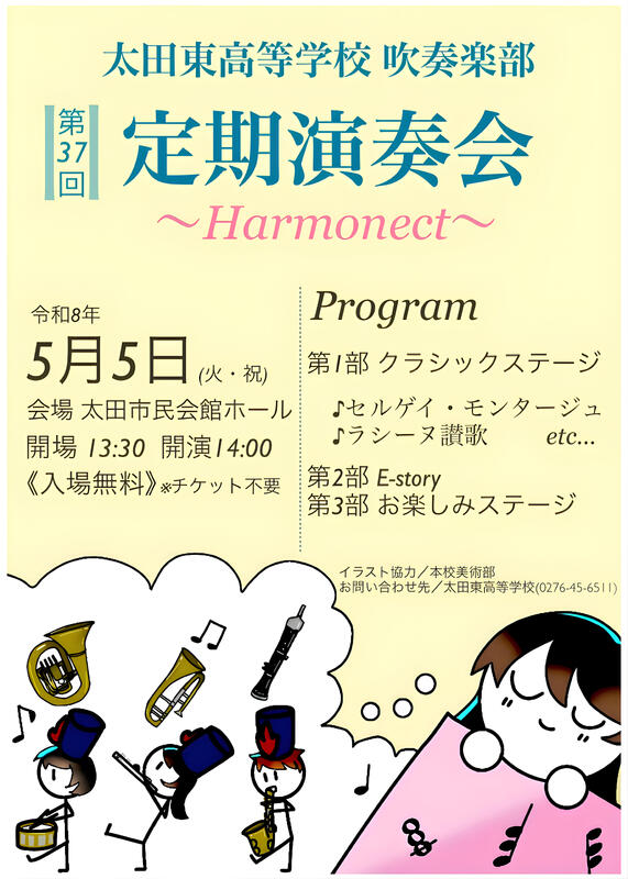 令和8年5月5日(火・祝)14時より、太田市民会館にて第37回定期演奏会を開催することとなりました。