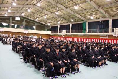 3月23日(月)に、全校生徒が体育館に集まって3学期の終業式等が行われました。