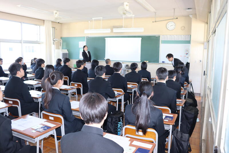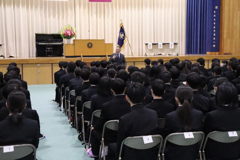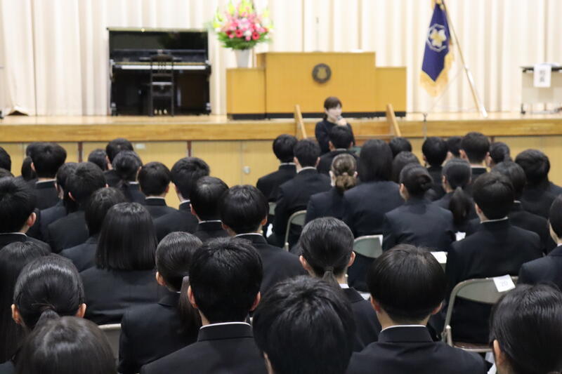 その後、生徒指導部、キャリア教育部から話がありました。春休みに入るにあたり、心がけてほしいことが示されました。それぞれの目標に合わせて、新しい学年の準備期間として春休みに意識してほしいです。