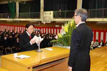 入学許可後の学校長式辞では、太田東高校のよき伝統を受け継ぎ失敗を恐れず様々なことにチャレンジし充実した高校生活を送り、大いなる成長を遂げてほしいという期待に満ちた話がありました。